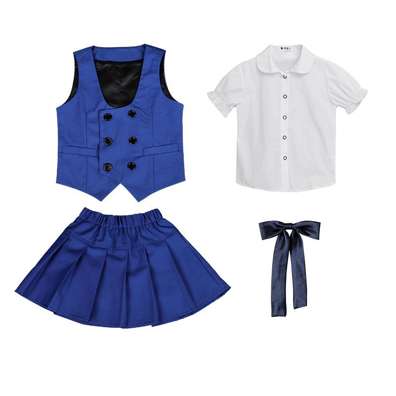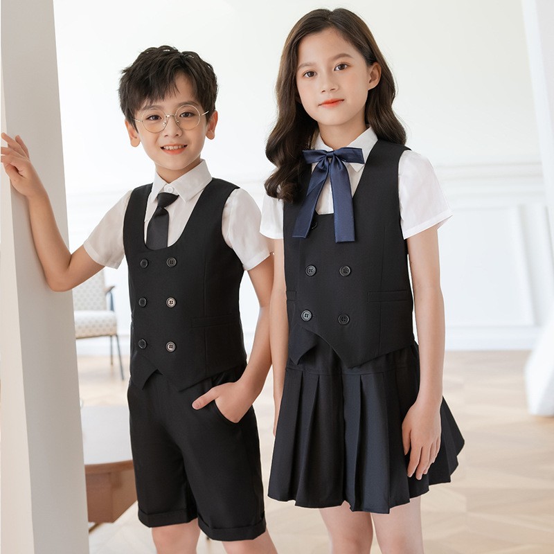 Maelezo ya asili: Ubunifu wa vazi la matiti mara mbili na nguo za shingo zilizoratibiwa huunda athari ya kuona mara moja, kuanzisha kitambulisho kisasa kwa hafla maalum za shule