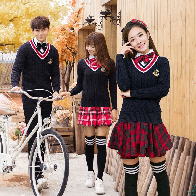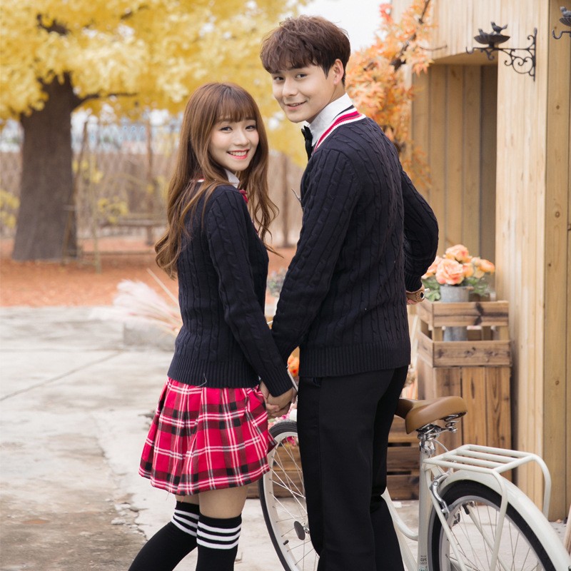 Seti hii ya mavazi ya kifahari huleta pamoja ufugaji wa jadi wa kebo na mtindo wa shule ya kisasa. Trim tofauti kwenye sweta ya shingo ya V inaongeza kumaliza kali, Wakati sketi ya shamba na soksi za juu za goti zinaunda ushirika, inaonekana mzuri kwa kujenga kitambulisho chanya cha shule.