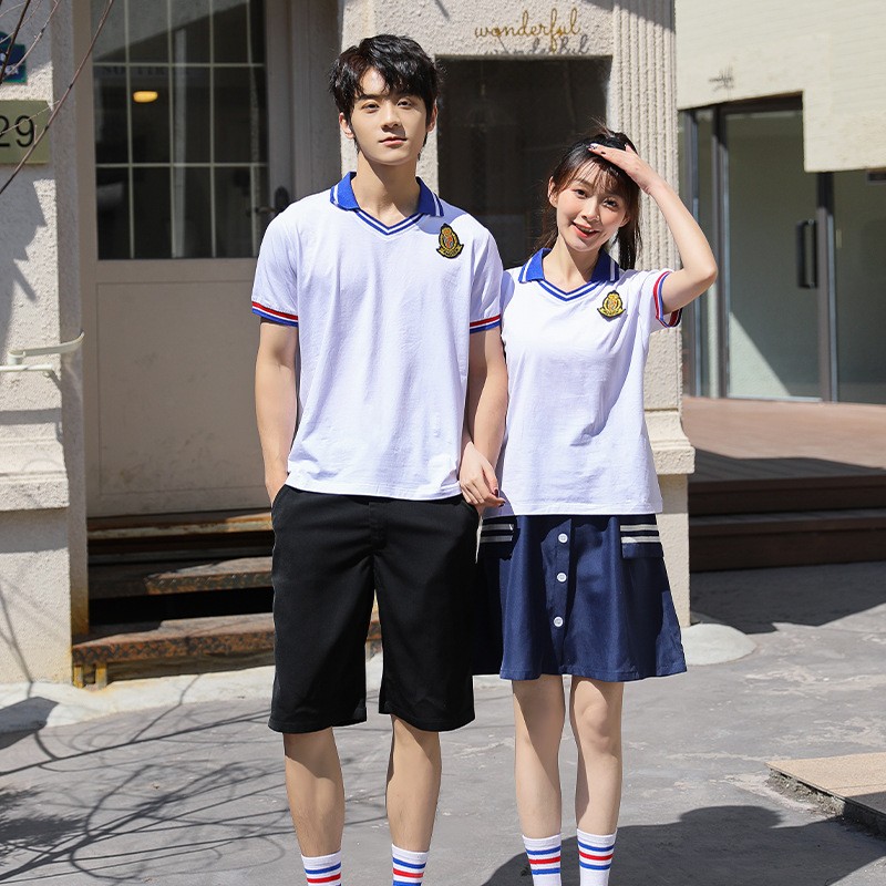 Mkusanyiko huu mzuri wa sare ya majira ya joto unaangazia kilele cha shingo tofauti cha V na trim ya kisasa ya rangi tatu, iliyounganishwa na chaguzi mbalimbali za chini ambazo huhudumia upendeleo wa jadi na wa kisasa. Mpango wa rangi nyeupe na ya majini unafanyiza sura ya umoja lakini tofauti kwa jumuiya ya shule yenu.