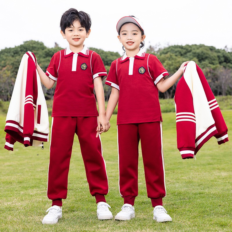 Mfumo huu wa sare unaosamana unachanganya utendaji wa michezo na mtindo ulioratibiwa, ulio na rangi mpya ya rangi nyekundu, nyeupe, na khaki ambayo huunda upatano wa kuona katika vipande vyote. Mkusanyiko hutoa chaguzi mbalimbali kwa misimu na shughuli tofauti wakati unadumisha kitambulisho cha shule kilichoungana.