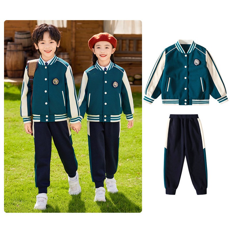 Vipengele vya nguo za Michezo: Jaketi ya baseball na suruali iliyotengenezwa huchanganya mahitaji ya jadi ya sare na mitindo ya riadha ya kisasa ambayo wanafunzi hufurahia kuvaa.