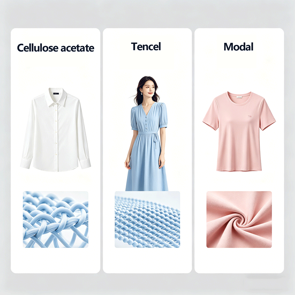 It is made from wood pulp through acetylation reaction to produce cellulose acetate ester, followed by dry spinning. Acetate fiber features a silk-like luster and drape, along with low moisture regain and dimensional stability, making it an ideal material for linings, decorative splicing, and high-sensory fabrics in professional wear.