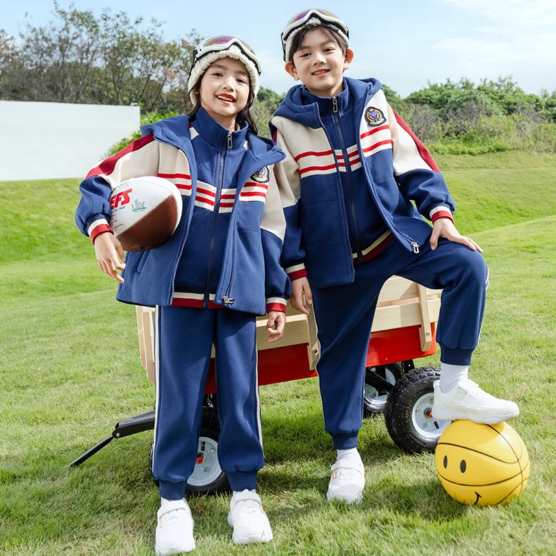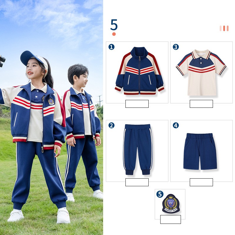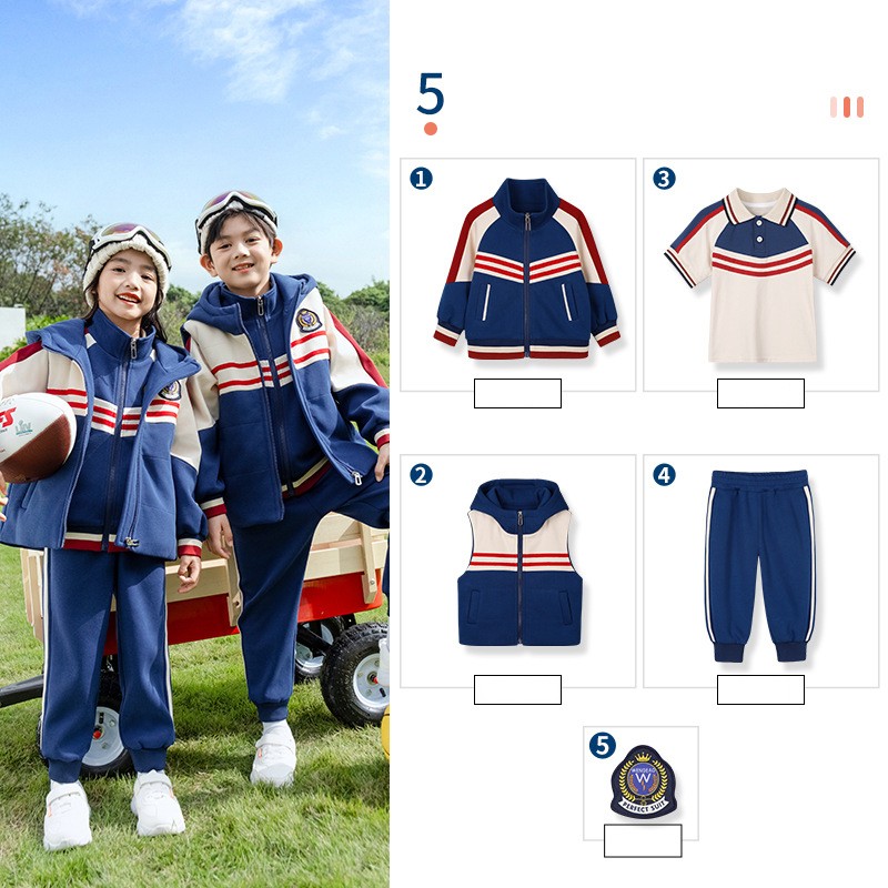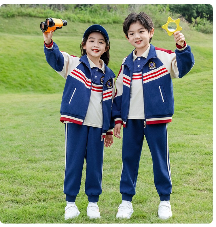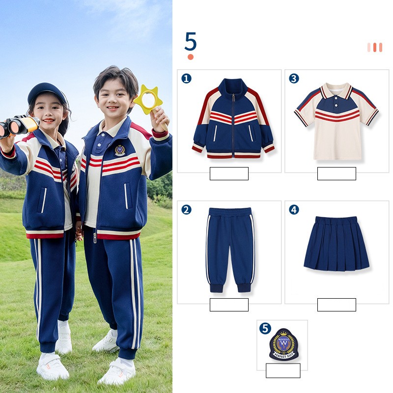 Mkusanyiko huu ulioratibiwa huchanganya kuzuia rangi ya kawaida na muundo wa vitendo ili kuunda suluhisho kamili la sare kwa misimu yote. Msingi wa kisasa wa majini na milia tofauti hudumisha uthabiti wa kuona wakati unashughulikia mahitaji tofauti ya hali ya hewa katika mwaka wote wa kitaaluma.